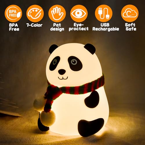 Tremdwoto - مصباح ليلي سيليكون لطيف بتصميم باندا إسفنجية قابل لإعادة الشحن عبر منفذ USB ومناسب للإهداء وكديكور بطابع كاواي لغرفة الأطفال البنات والأولاد والرضع من تريمدوتو، متعدد الألوان