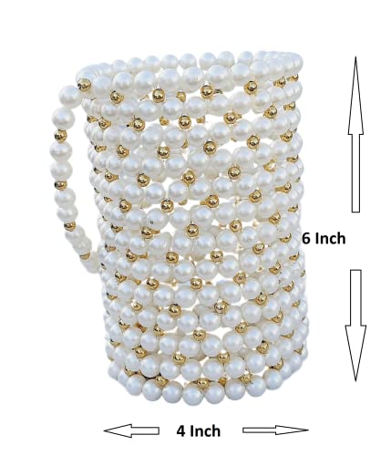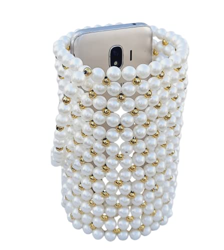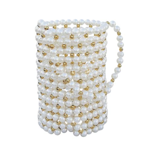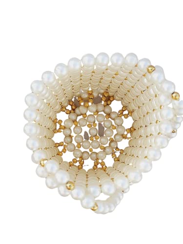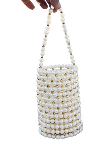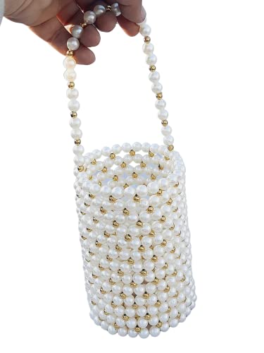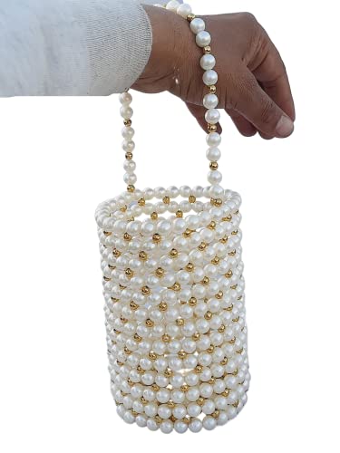 Trend Overseas - الاتجاه في الخارج شنطة يد دائرية مصنوعة يدويا مزينة باللؤلؤ للنساء - شنط انيقة للبنات - احدث توت عصرية من اللؤلؤ ابيض