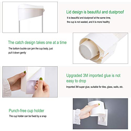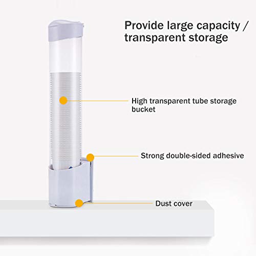 • 【تنبيه】موزع الأكواب يناسب الأكواب بسعة 148 مل ~ 207 مل (قطر فتحة الكوب: 6.5-7.5 سم/2.6-2.9 بوصة). يمكن لحامل الأكواب حمل 50 قطعة من الأكواب الورقية مرة واحدة ويمكنه أيضًا تجنب الهدر عن طريق إخراج كوب واحد عند كل استخدام. الأكواب المخروطية غير متوافقة!