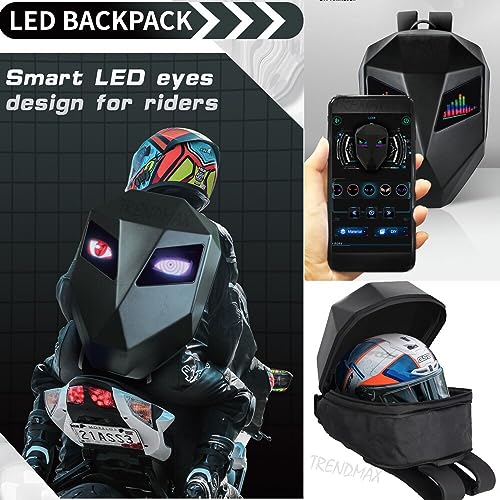 TrendMax - شنطة ظهر اي نايت باضاءة LED من تريند ماكس للدراجة النارية مع تحكم بلوتوث وشاشة عرض ذكية يمكنك تركيبها بنفسك، أسود