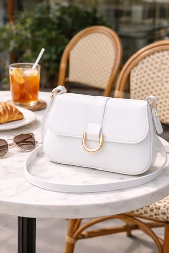 TRENDORA - شنطة كروس أنيقة من الجلد للنساء، بتفاصيل ذهبية، حزام قابل للتعديل، إغلاق مغناطيسي من تريندورا، 22 × 16 سم