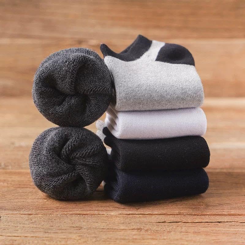 TRENDORA - شرابات بطول الكاحل مبطنة بالقطن السميك للرجال، طبقة داخلية قطيفة دافئة وقماش ناعم ثقيل مزود بمسامات للتهوية، مثالية للراحة في الشتاء من تريندورا، 5 أزواج + زوج هدايا