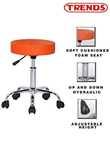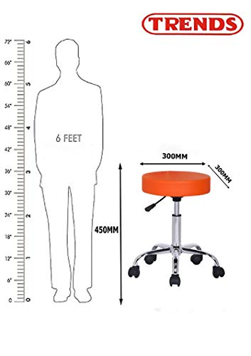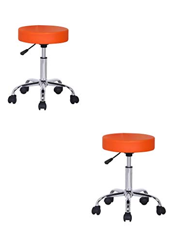 Trends - طقم 2 كرسي طبيب بتصميم دائري من الجلد، وارتفاع قابل للتعديل وأرجل بعجلات للمنزل والمكتب من تريندز - لون برتقالي