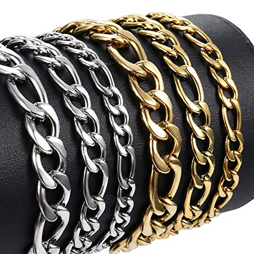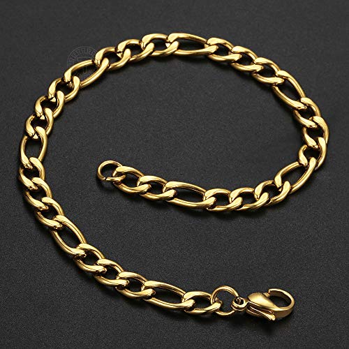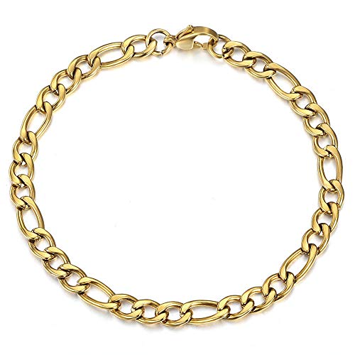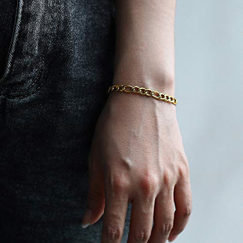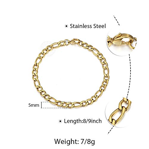 Trendsmax - Trendsmax 5mm Figaro Link Chain Bracelet Gold Plated Stainless Steel Figaro Bracelet for Men Women 8/9inch