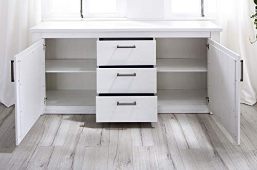 trendteam smart living - خزانة جانبية فرنلاين لغرفة المعيشة الذكية مع مساحة تخزين كبيرة، هيكل من خشب الصنوبر الأبيض للديكور من تريند تيم، مقاس 1.97 متر× 88 سم× 2.10 متر