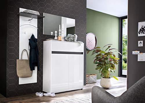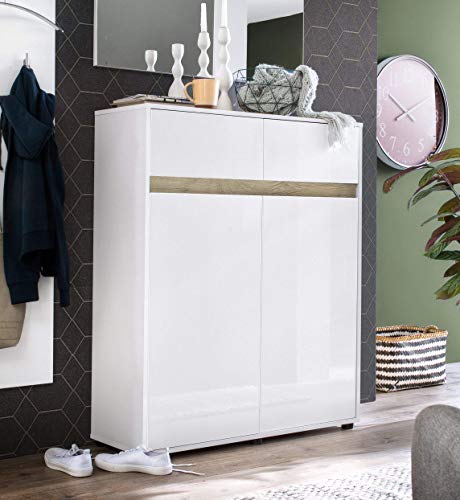 trendteam smart living - خزانة تريند تيم ذكية ذات أدراج مع خزانة أحذية ومساحة تخزين كبيرة من فرنلاين، مصنوعة من لوح أبيض شديد اللمعان ومتعدد الألوان، مقاس 97 سم × 1.17 م × 1.28 م