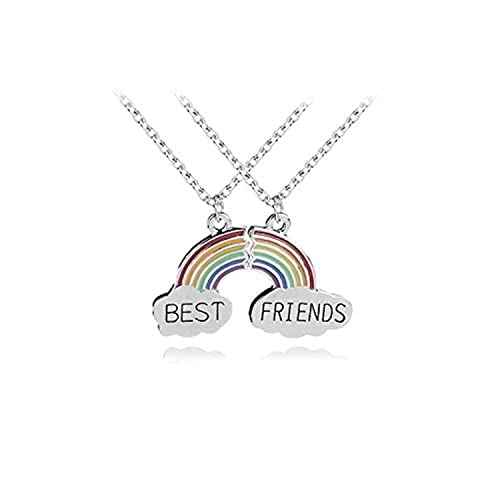 Generic - عقد بقلادة عصرية بتصميم قلب مكسور بالوان قوس قزح للنساء من بيست فريندز، مجوهرات الصداقة