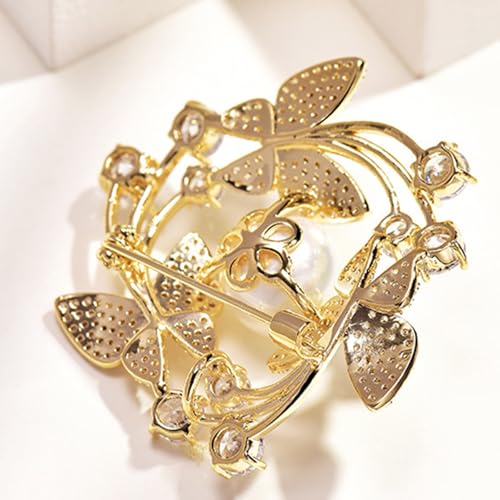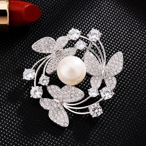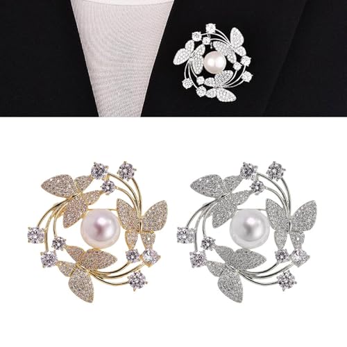 EXQIOUR - بروش عصري على شكل اكليل على شكل فراشة مع لؤلؤ من خليط معدني لحفلات الزفاف والعشاء ومناسبات العمل، بروش عصري للنساء