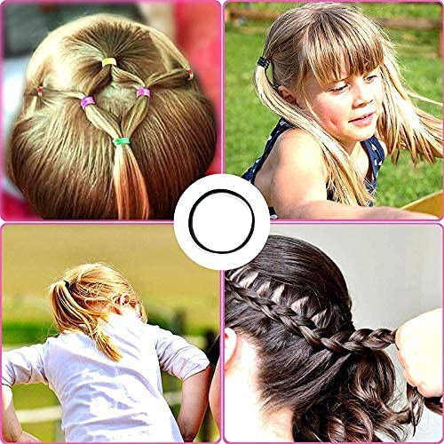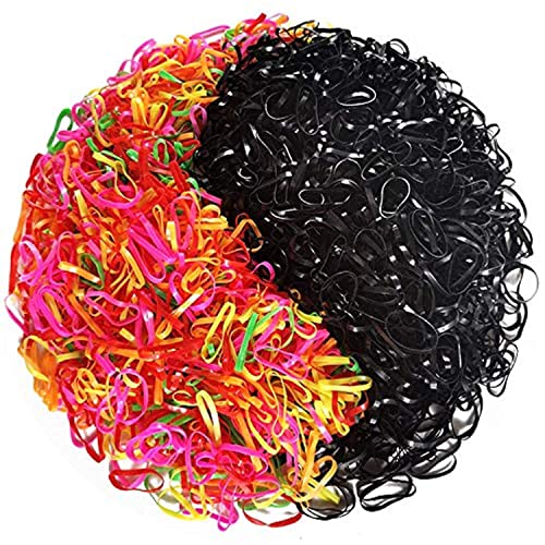 Trendy Club - رباطات مطاطية صغيرة 1000 قطعة من تريندي كلوب، ربطات شعر ناعمة صغيرة للاطفال مناسبة للرضع، والفتيات، والنساء، والاطفال، والضفائر، والشعر الطويل، وتسريحة ذيل الحصان والمزيد (اسود وملون)