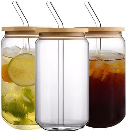 Generic - مج زجاجي عصري مستوحى من شكل علبة بغطاء خشبي وشفاطة زجاجية قابلة لإعادة الاستخدام سعة 450 ملليلتر للمشروبات الساخنة والباردة والقهوة والشاي والعصائر واللاتيه المثلج للاستخدام في المنزل والمكتب