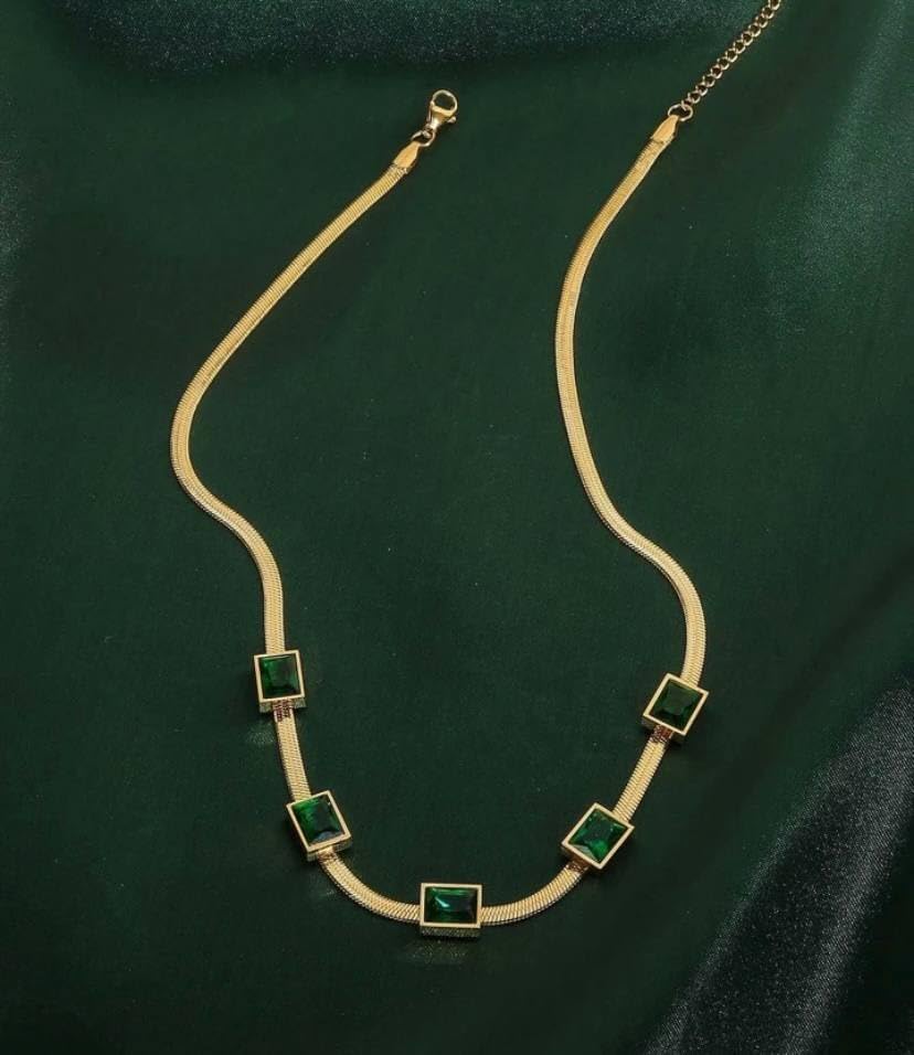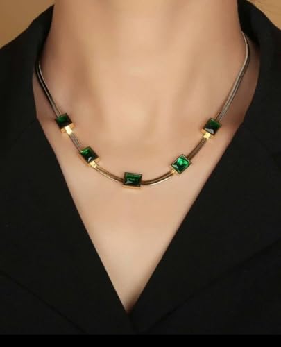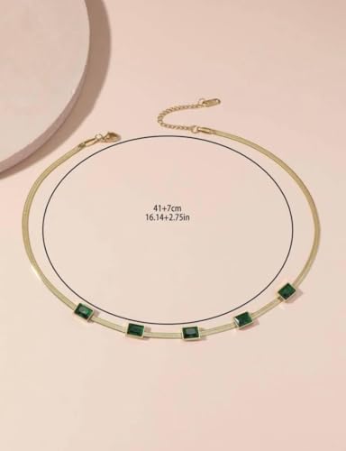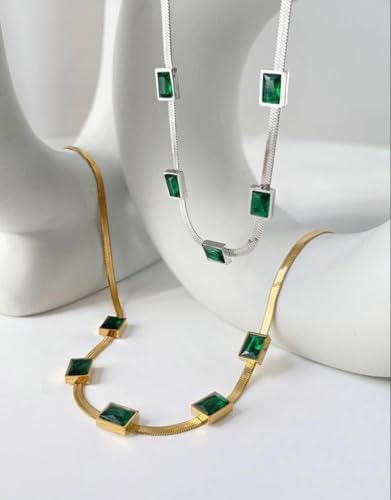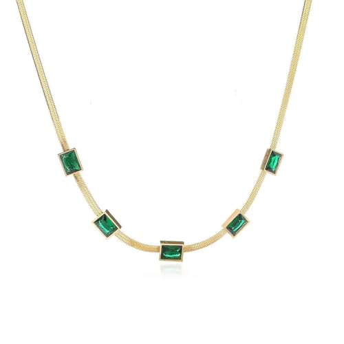 Generic - قلادة عصرية ذهبية اللون من الستيل على شكل ثعبان مع 4 خرزات كريستال بلون أخضر فاخر الزركونيا المكعب مجوهرات للحفلات للنساء
