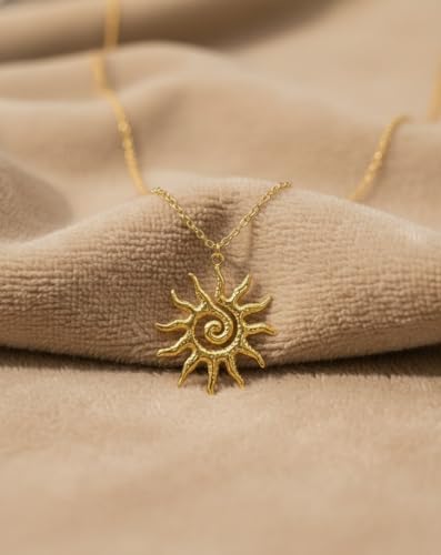 AREXOL - قلادة عصرية ذهبية حلزونية بتصميم شمس للنساء، مجوهرات انيقة من الستانلس ستيل، اكسسوار انيق خفيف الوزن ومتين، هدية مثالية للازياء اليومية والمناسبات الخاصة