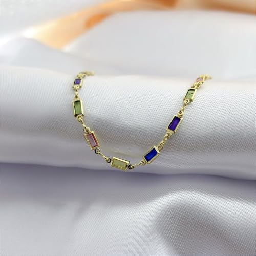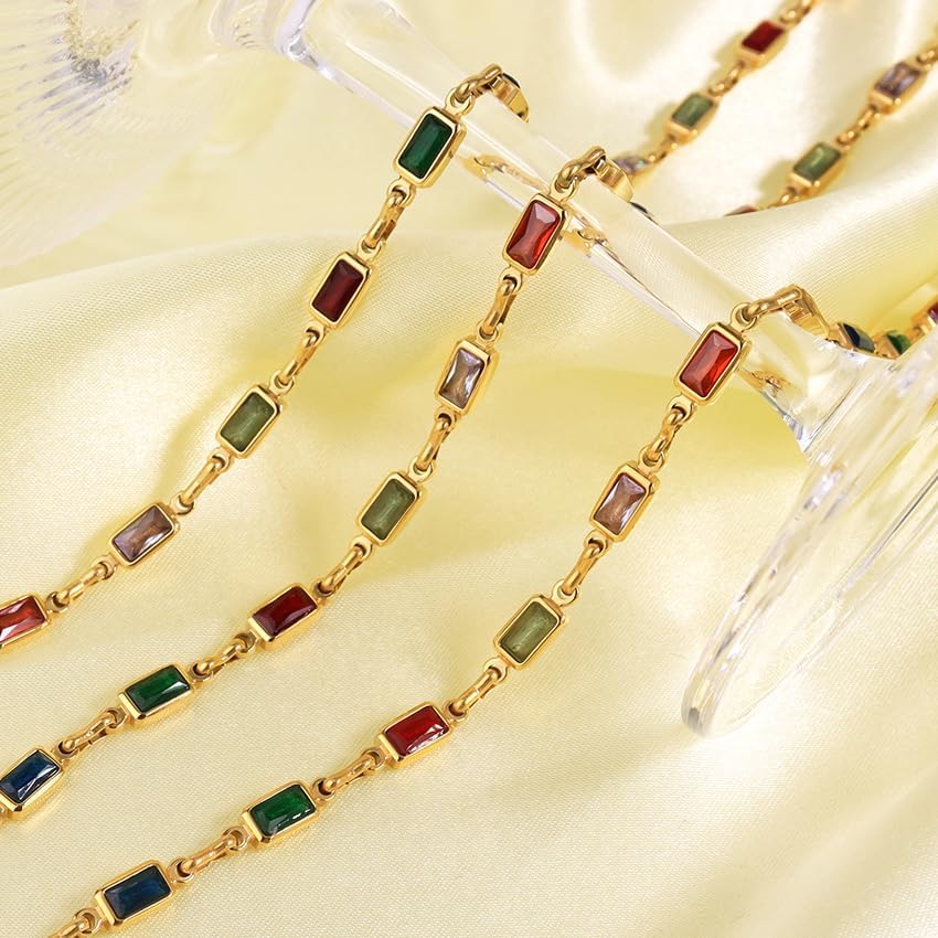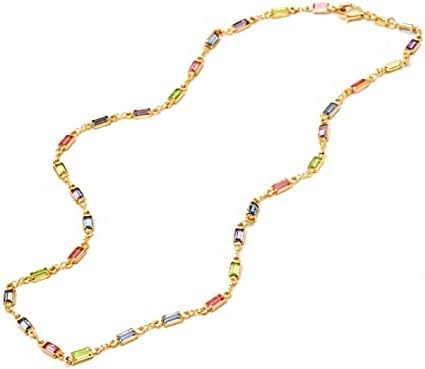 Generic - قلادة عصرية ذهبية من الستانلس ستيل مع احجار مستطيلة متعددة الالوان انيقة وخفيفة الوزن للارتداء اليومي للنساء