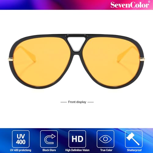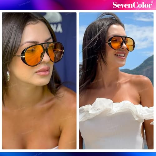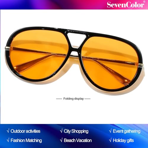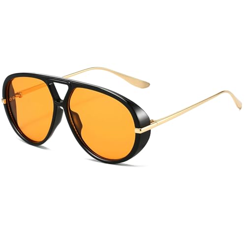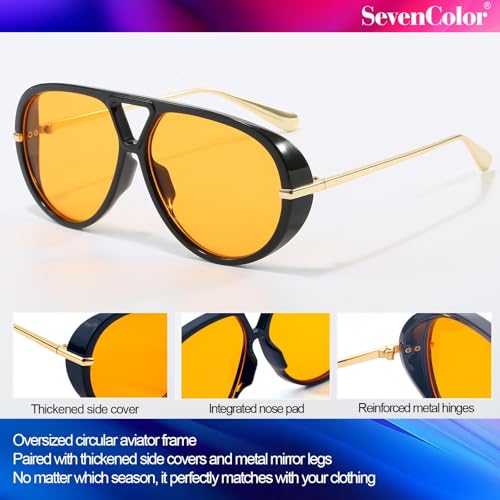 fashion mania - نظارة شمسية افياتور عصرية كبيرة الحجم بتصميم ريترو دائري وظلال عتيقة