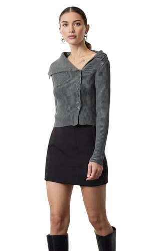 Trendyol - ترنديول كارديجان صوف محبوك فاخر بمظهر مرسيريزد بلون رصاصي/ خيوط خاصة ملائمة للجسم Twoaw25Hi00254، رصاصي، مقاس M