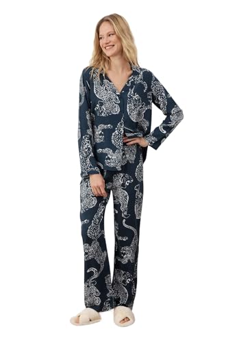 Trendyol - بيجامة Thmaw24Pt00092 من الفسكوز المنسوج بنقشة نمر رصاصي من ترنديول، رصاصي، 42