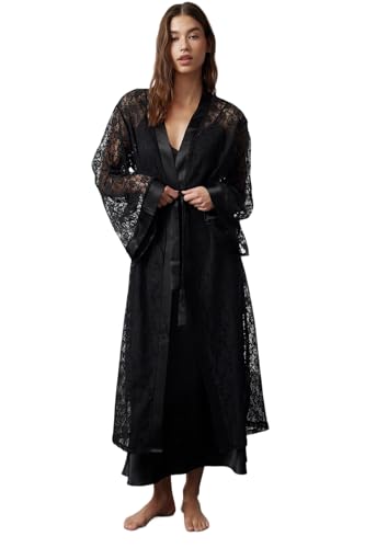 Trendyol - فستان محبوك من الدانتيل بحزام وحزام من الساتان بلون أسود Thmaw24Sb00011، مقاس اكس لارج XL من ترنديول