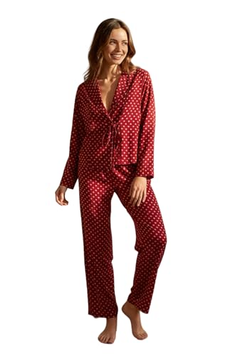 Trendyol - بيجامة مصنوعة من نسيج محبوك من الفسكوز مع رباط على شكل قلب، طراز Thmaw22Pt0300 من ترينديول، لون أحمر (Claret Red)، مقاس 38