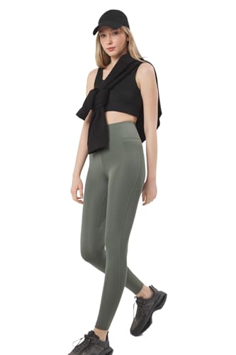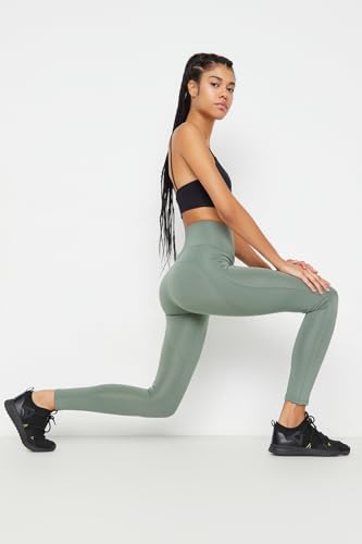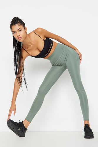 Trendyol - ترنديول سروال يوجا رياضي ضيق بخصر مرتفع للنساء بلون كاكي