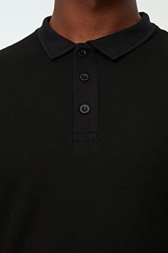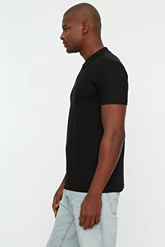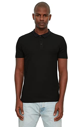 Trendyol - تيشرت برقبة بولو موديل TMNSS20PO0002 قطني 100%، قصة ضيقة/ نحيفة، منقوش بأزرار للرجال من ترينديول، أسود