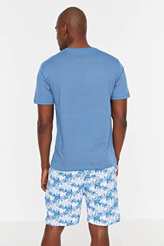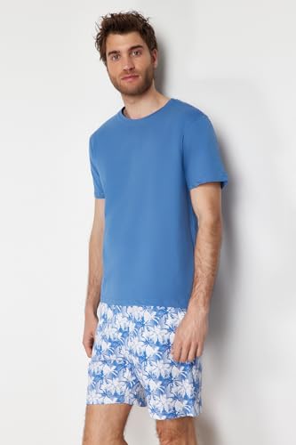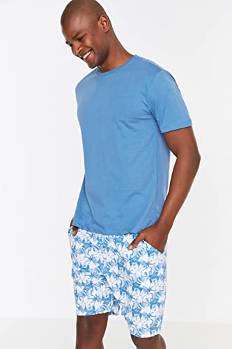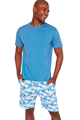 Trendyol - ترنديول طقم بيجامة للرجال بقصة عادية وشورت مطبوع عليه نخيل THMSS21PT0331