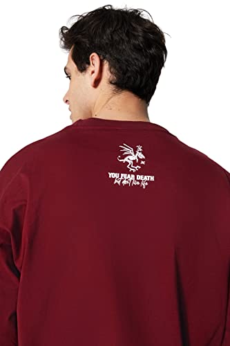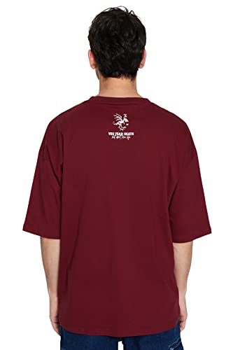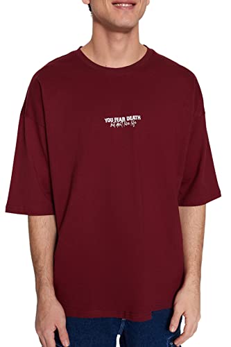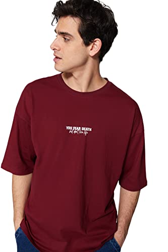 Trendyol - ترنديول تي شيرت للرجال مقاس كبير/واسع مصنوع من القطن بنسبة 100% مطبوع عليه نص بسيط TMNSS23TS00099