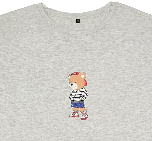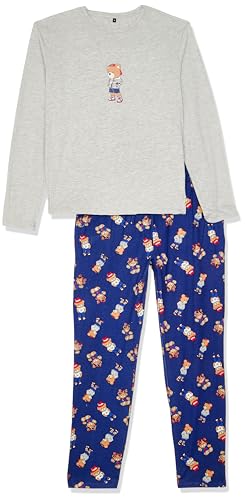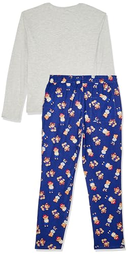 Trendyol - ترنديول طقم بيجامة للرجال رمادي ميلانج - طقم بيجامة محبوكة مزدوجة بنمط دب تيدي ازرق كحلي TMNAW25PT00044