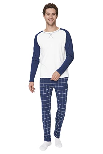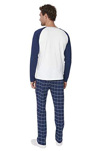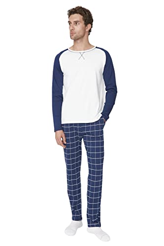 Trendyol - بيجامة قطن 100% طراز THMAW21PT0879 للرجال بنمط كاروهات ومنسوجة من ترنديول