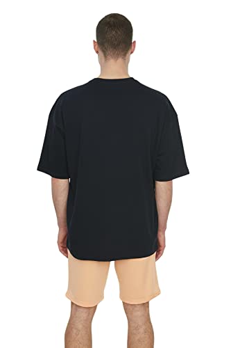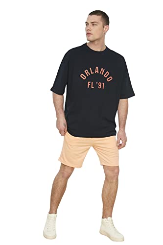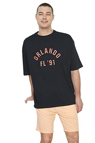 Trendyol - تيشرت للرجال مقاس كبير 100% مطبوع عليه مدينة موديل TMNSS22TS0304 من ترنديول - لون أزرق كحلي