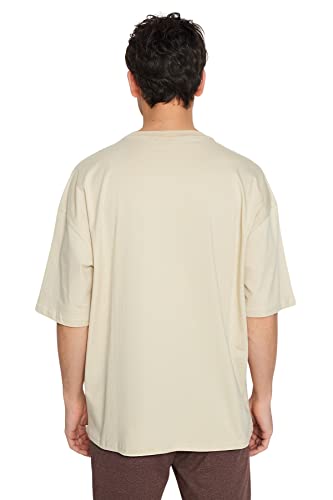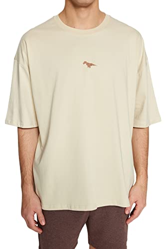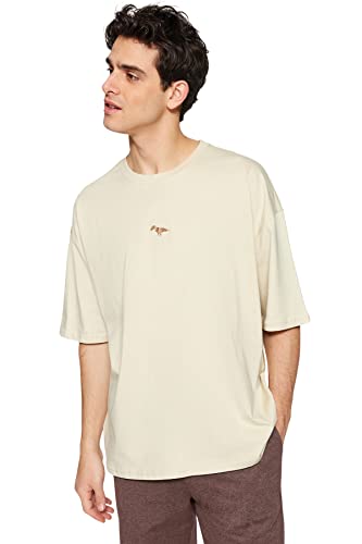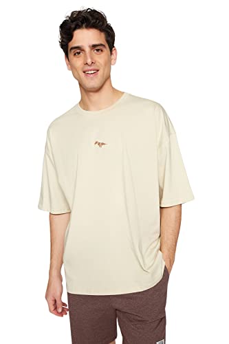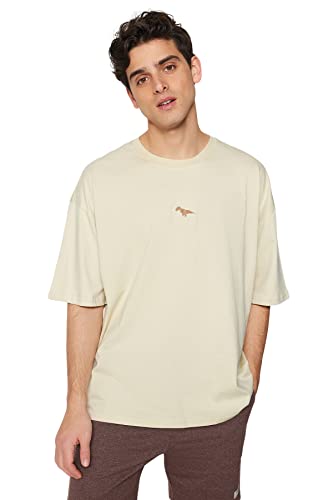 Trendyol - ترنديول تي شيرت رجالي كبير الحجم باكمام قصيرة مطرز على شكل ديناصور 100% TMNSS23TS00243