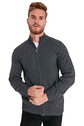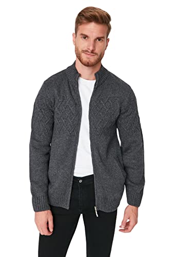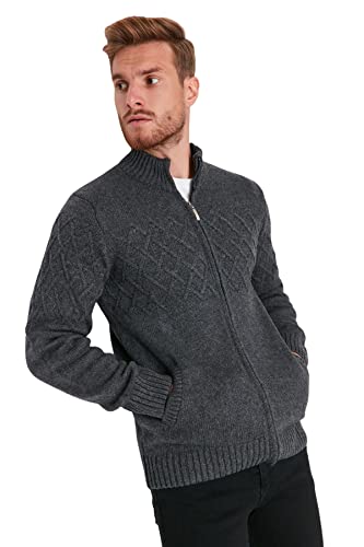 Trendyol - كارديجان صوف محبوك بقصة ضيقة ورقبة عالية للرجال، سويتر كارديجان من ترنديول مان، عبوة من قطعة واحدة