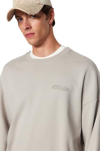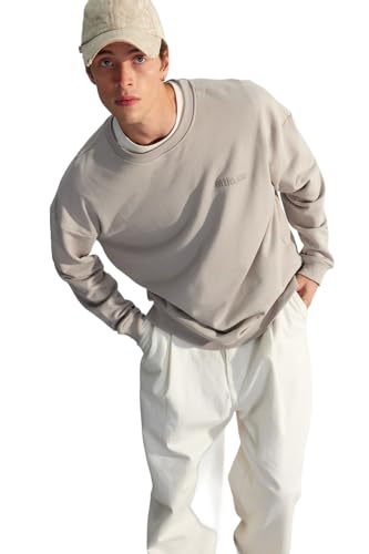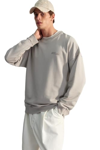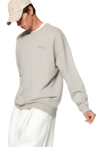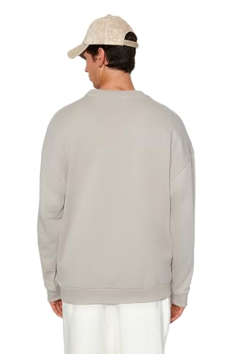 Trendyol - سويت شيرت رجالي برقبة دائرية، واسع وكبير الحجم، مطرز بدون علامات، طراز Tmnaw24Sw00039، عبوة من 1 قطعة، لون رمادي، من ترنديول