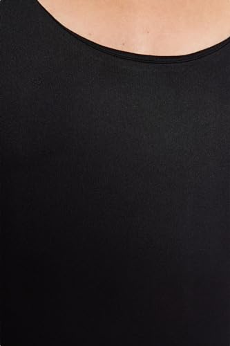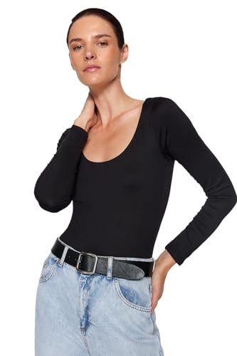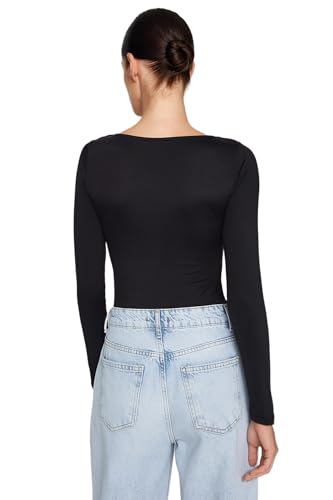 Trendyol - ترنديول طوق حمام السباحة بقصة ضيقة من قماش مرن وناعم بلون اسود - كم طويل مع مشابك كبس Twoaw24Bd00031، اسود، M