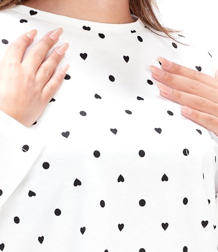 طقم بيجامة محبوك من القطن بنسبة 100% بتصميم منقط وقلوب THMAW25PT00039