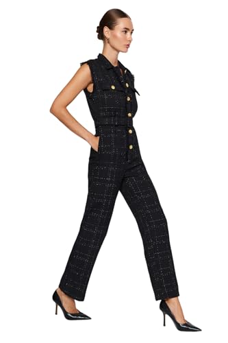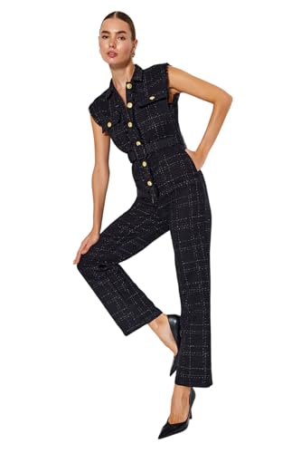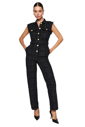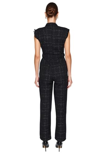 Trendyol - افرول بحزام وياقة وأزرار من قماش تويد منسوج TWOAW24TU00013 للنساء من ترينديول، أسود