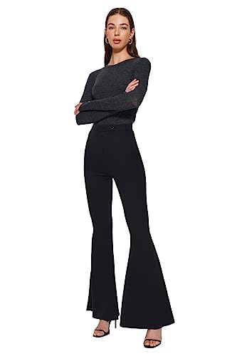 Trendyol - بنطلون TWOAW24PL00038 بنسيج محبوك واسع من الأسفل للنساء من ترنديول، لون أسود