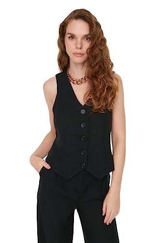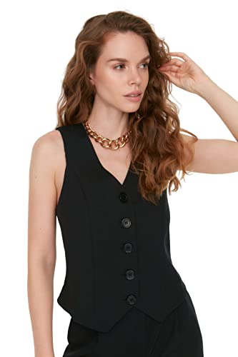 Trendyol - فيست قصير منسوج بقصة عادية للنساء من ترينديول، أسود، TWOSS22YE0046