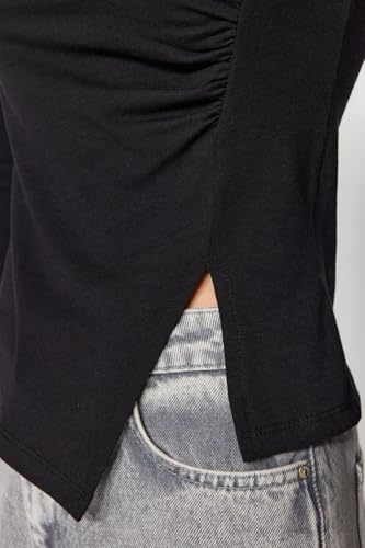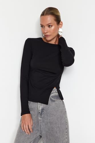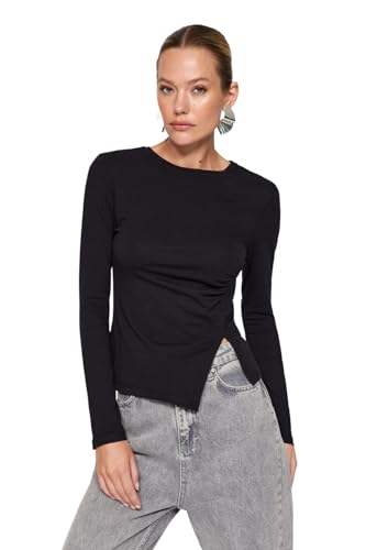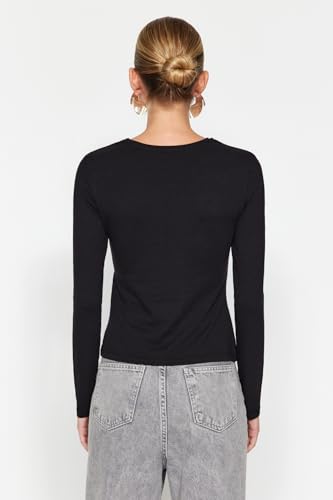 Trendyol - بلوزة محبوكة من القطن بفتحة واحدة ورقبة دائرية ضيقة للنساء من ترينديول - لون أسود - TWOAW24BZ00388
