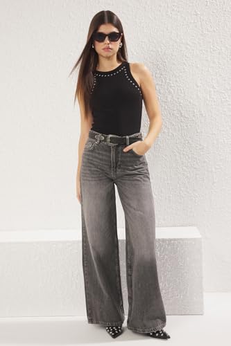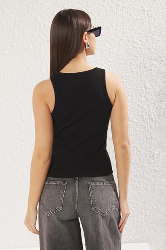 Trendyol - ترنديول فانلة داخلية محبوكة مضلعة وقابلة للتمدد للنساء بتفاصيل أساسية بلون اسود طراز TWOSS25AL00008