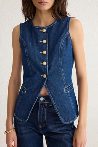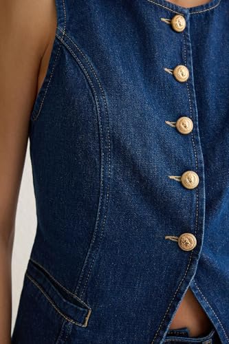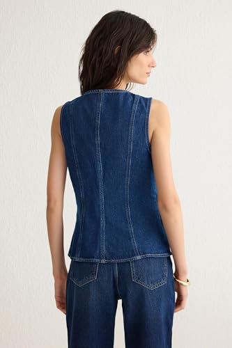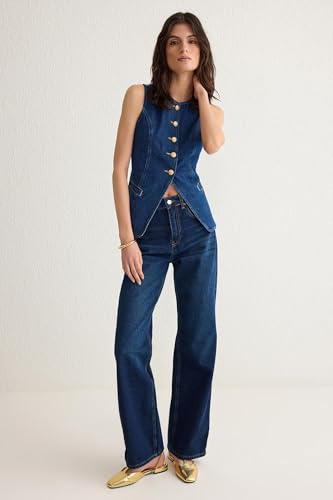Trendyol - ترنديول فيست جينز بتفاصيل خياطة بازرار بلون ذهبي وازرق داكن للنساء TWOSS25YE00001 (عبوة من قطعة واحدة)