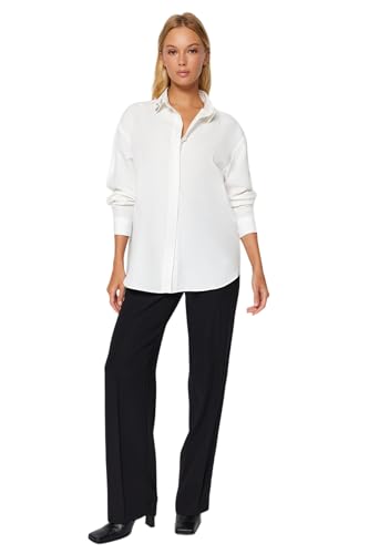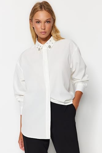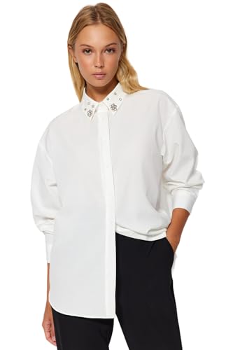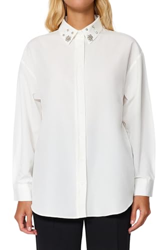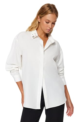 Trendyol - ترنديول قميص منسوج للنساء بياقة مزينة بفصوص حجرية مقاس كبير TWOAW24GO00168 (عبوة من قطعة واحدة)