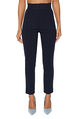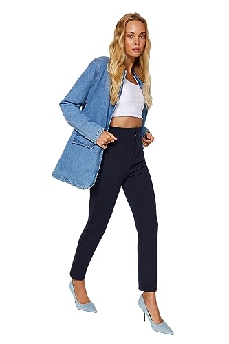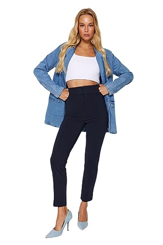 Trendyol - بنطلون محبوك سميك بخصر مرتفع مطاطي ومضلع وقصة ضيقة سليم فت للنساء من ترينديول TWOAW24PL00114