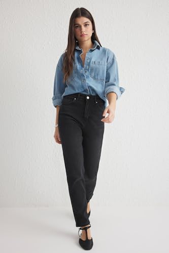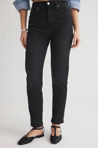 Trendyol - بنطلون جينز مريح بخصر مرتفع للنساء Twoss25Je00115 من ترنديول