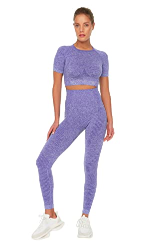 Trendyol - ترنديول سروال ضيق رياضي محبوك بطول كامل للنساء بلون بنفسجي فاتح TWOSS21TY0024