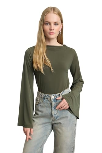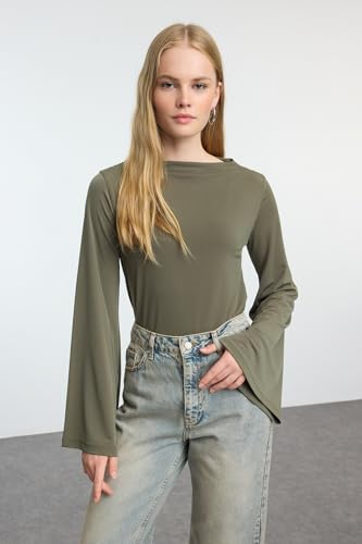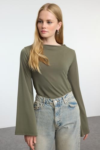 Trendyol - بلوزة بقصة مريحة فضفاضة وأكمام إسبانية للنساء من ترينديول، مصنوعة من قماش محبوك مطاطي (عبوة من قطعة واحدة)، موديل TWOAW25BZ00203