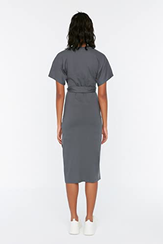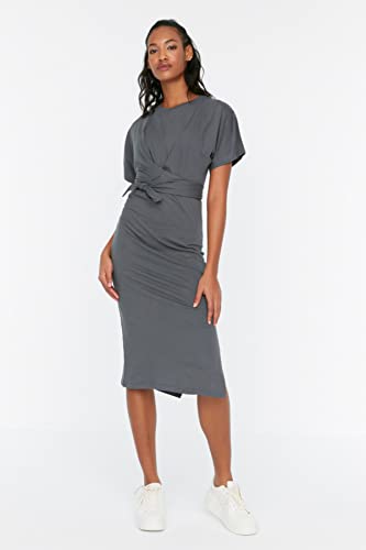 Trendyol - فستان متوسط الطول منسوج للنساء مصنوع من القطن بنسبة 100% بفتحة عند الخصر وربطة عنق TWOSS21EL0404 من ترنديول