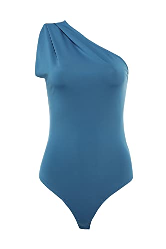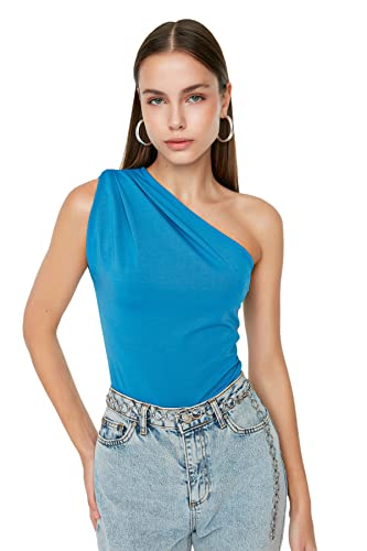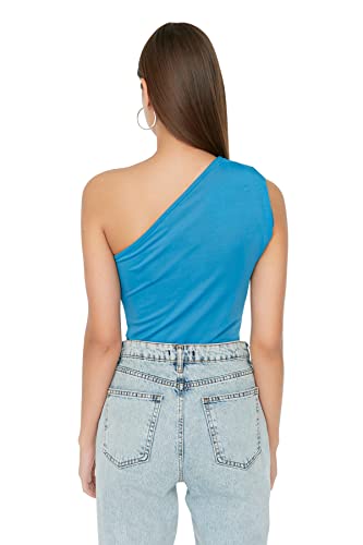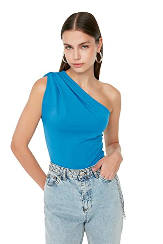 Trendyol - توب منسوج مرن طراز TWOSS22BD00014 للنساء بياقة غير متساوية وأزرار كبس من الأسفل من ترنديول