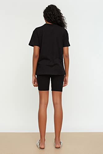 Trendyol - ترنديول طقم بيجامة محبوك من القطن بنسبة 100% للنساء، لون اسود، THMSS20PT0397