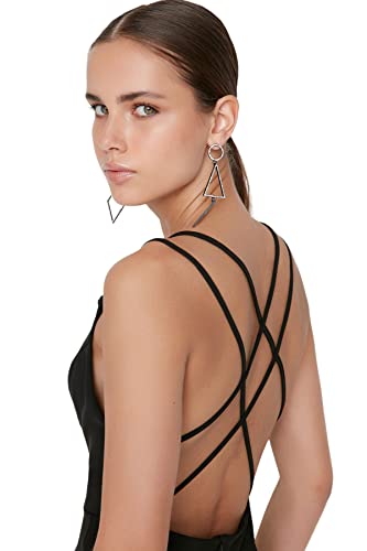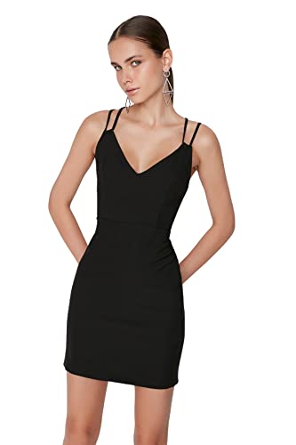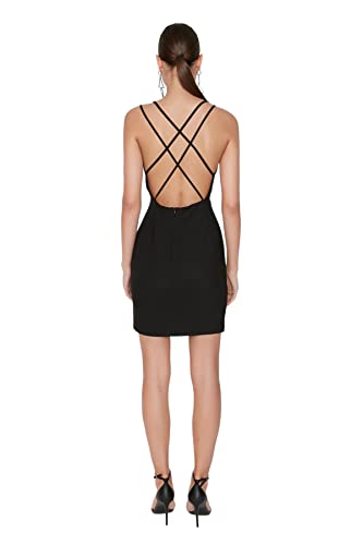 Trendyol - ترنديول فستان سهرة قصير انيق محبوك بتفاصيل خلفية للنساء، لون اسود، موديل TPRSS22EL2308 (عبوة من قطعة واحدة)