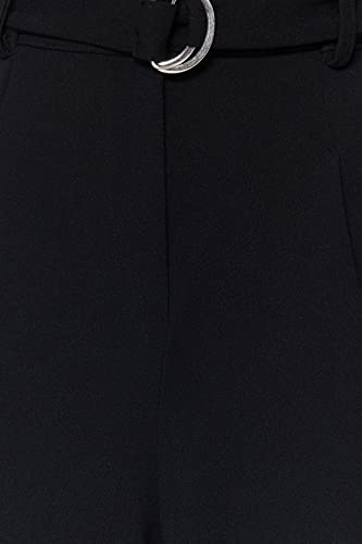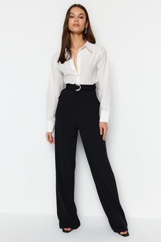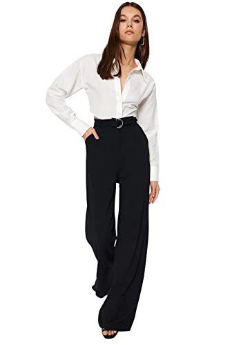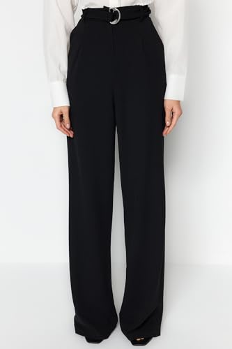 Trendyol - بنطلون منسوج من الكريب الأنيق بخصر مرتفع وحزام وأرجل واسعة من ترنديول، أسود، موديل TWOSS23PL00330 (قطعة واحدة)